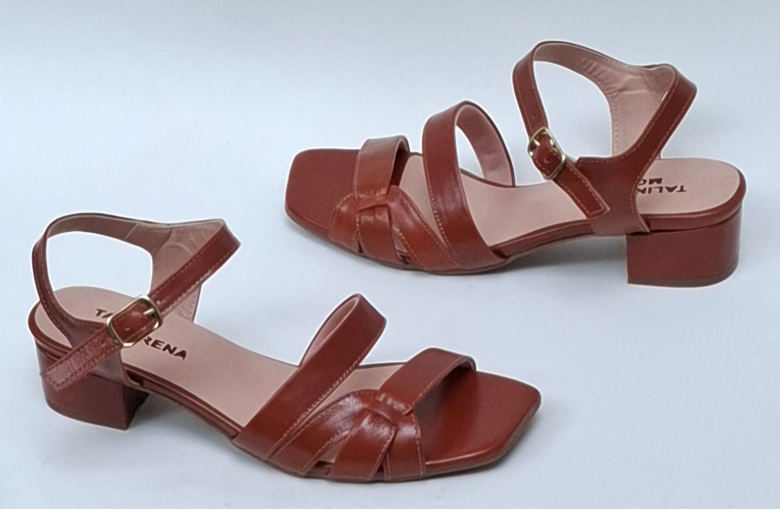 Sandália couro canela, salto 3 Cmts com solado antiderrapante