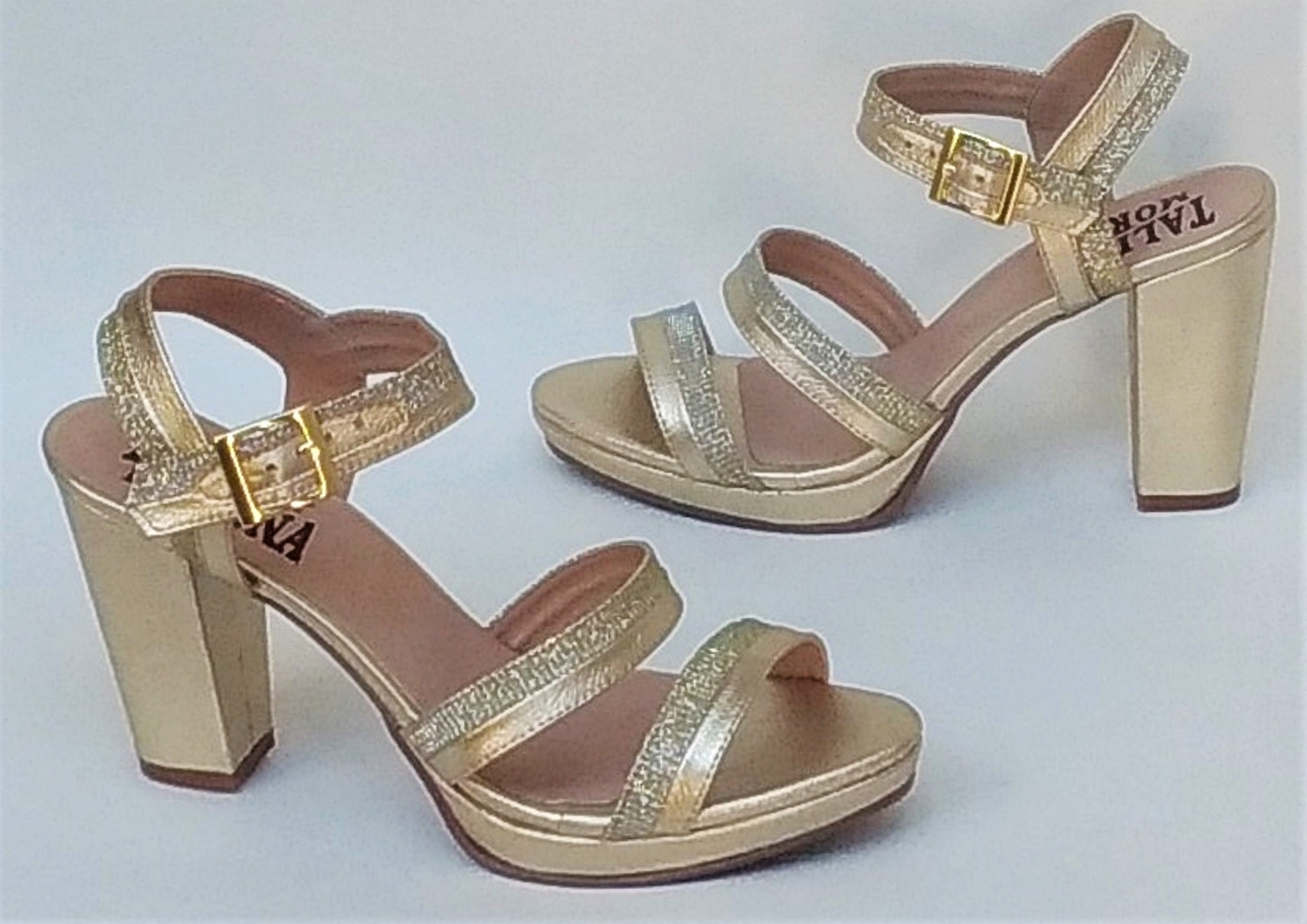 Sandália couro champanhe combinado , salto 10 centímetros com meia pata e solado antiderrapante